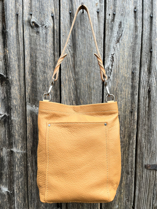 Barcelona Bucket in Distressed Tan with Cheyenne Leather Strap