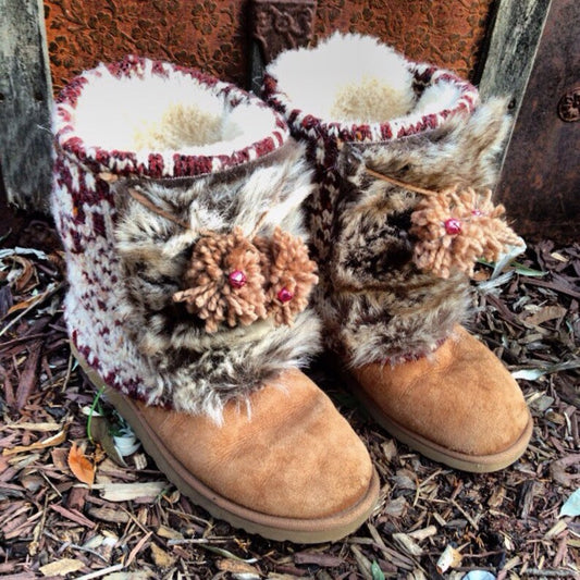Fair Isle Mini Boot Sweaters with Faux Fur Trim