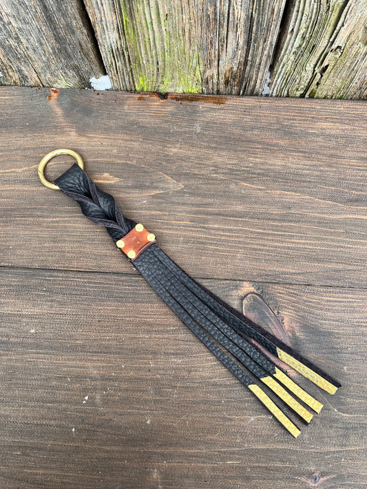 Twisted Fox Tag Leather Tassel with Black & Gold Ombré Fringe