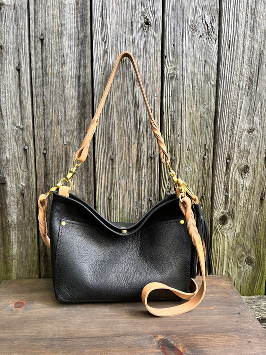 Emma Shoulder Bag in Classic Black Distressed Bison