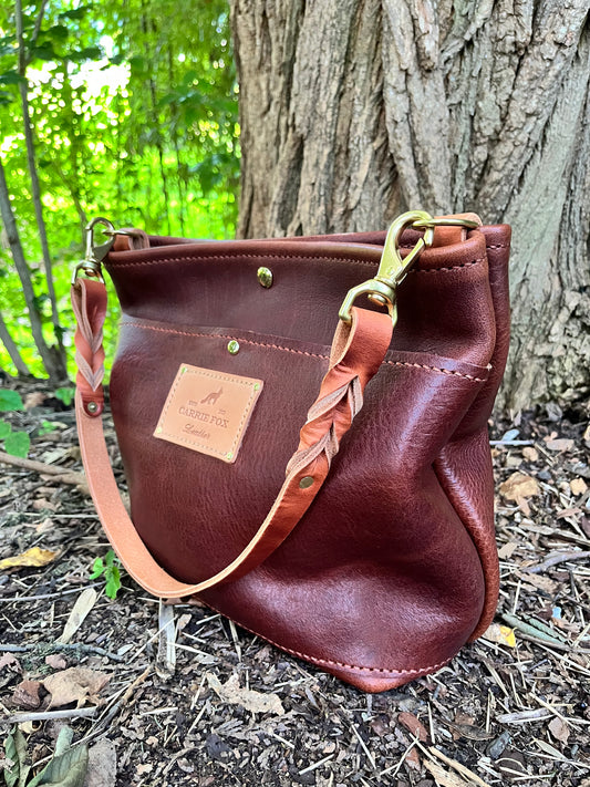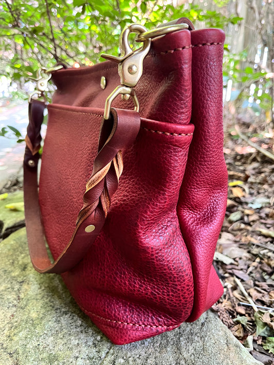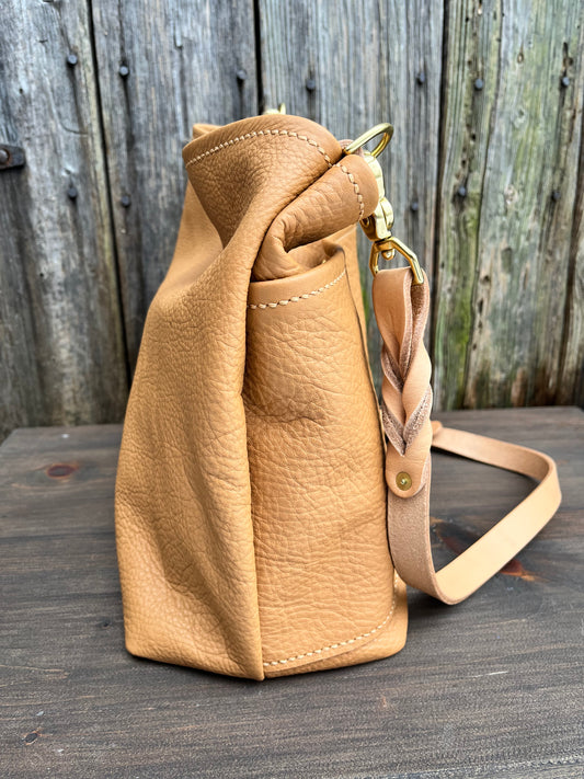 Emma Shoulder Bag in Wickett & Craig Milled Buck Brown with Longer Braided Leather Strap
