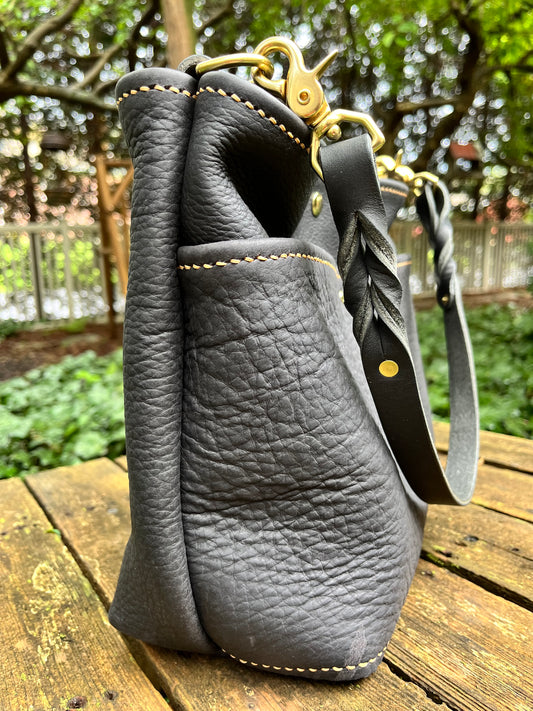 Emma Bag in Rustic Dark Brown Milled Veg Tanned Leather with Black Horween Grab Handle