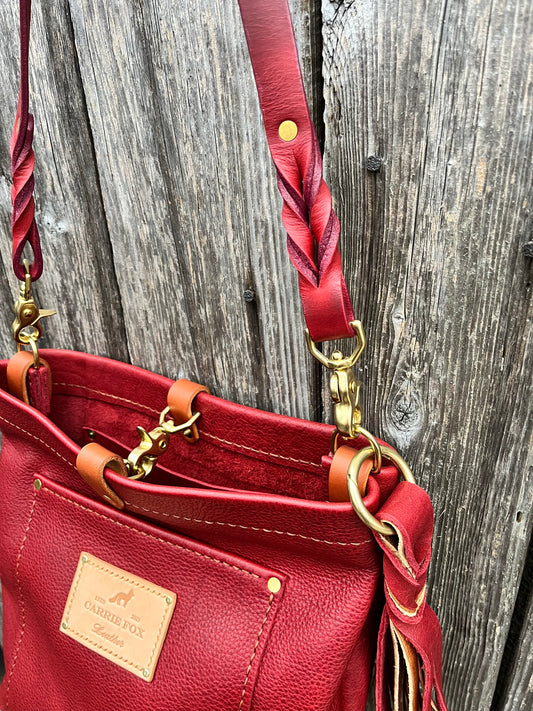 Sold outCarrie Pocket Hobo in Cherry Bison