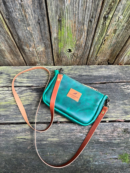 Poppy Crossbody in Emerald Cowhide with Brown Leather Accents