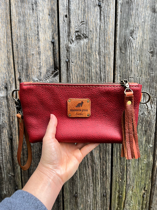 Pipsqueak Wristlet/Crossbody in Bordeaux Italian Veg Tan with Dark Brown Leather Accents