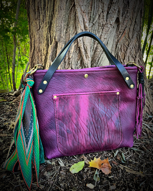 Crissy Grab Bag in Grape Bison with Front Pocket & Black Horween Handles