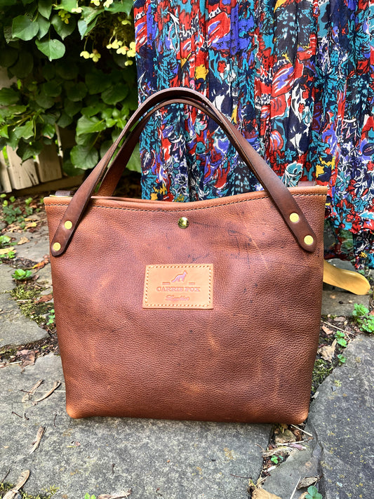 Carrie Fox Leather Tote Mini in Italian Olive Veg Tanned Leather with Walnut Horween Handles
