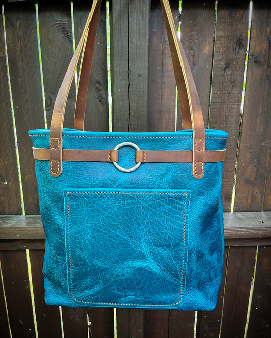Foxy Tote in Blue Bison with Horween Leather Straps