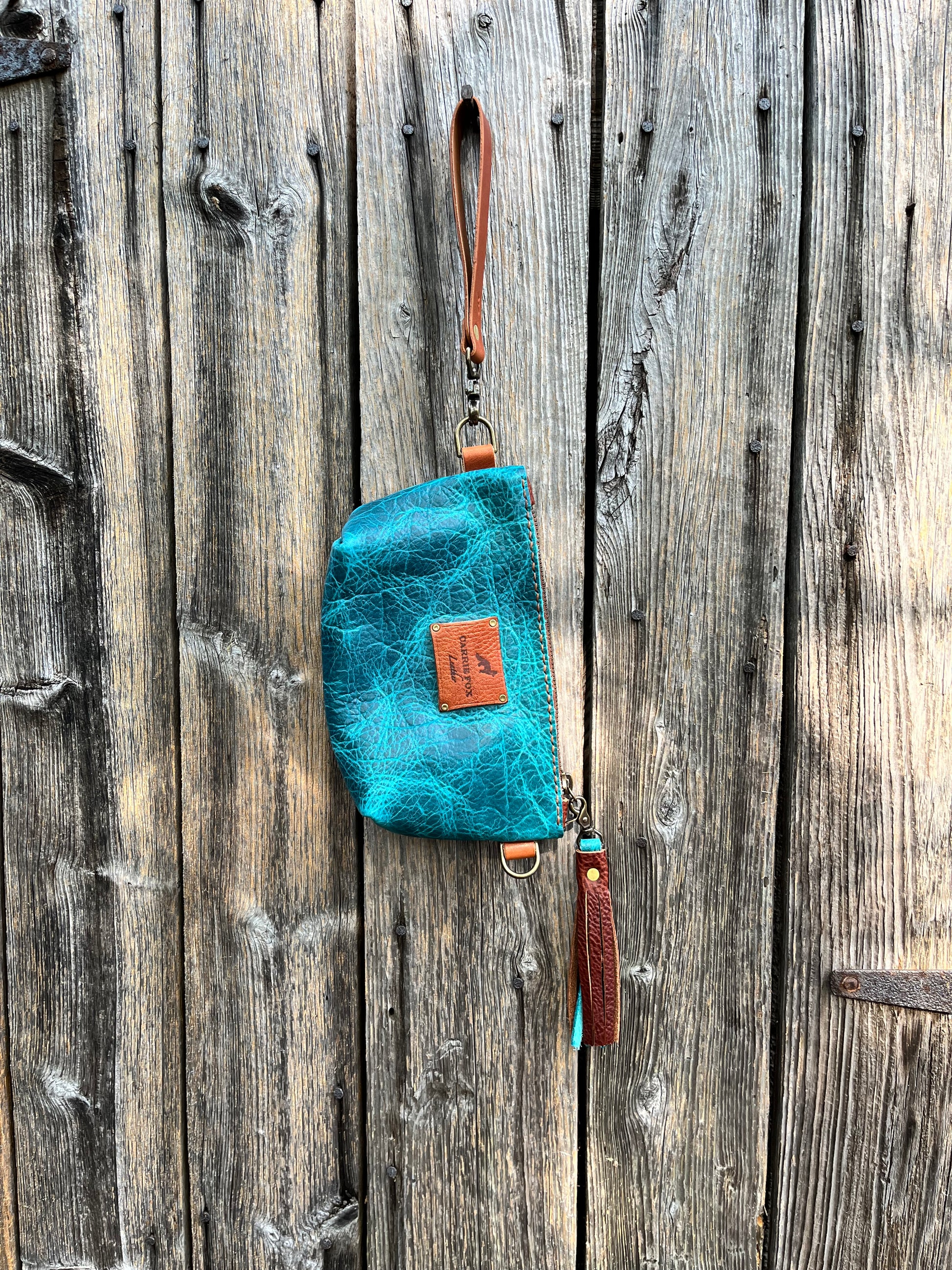 Pipsqueak Wristlet/Crossbody in Blue Bison with English Tan Leather Accents