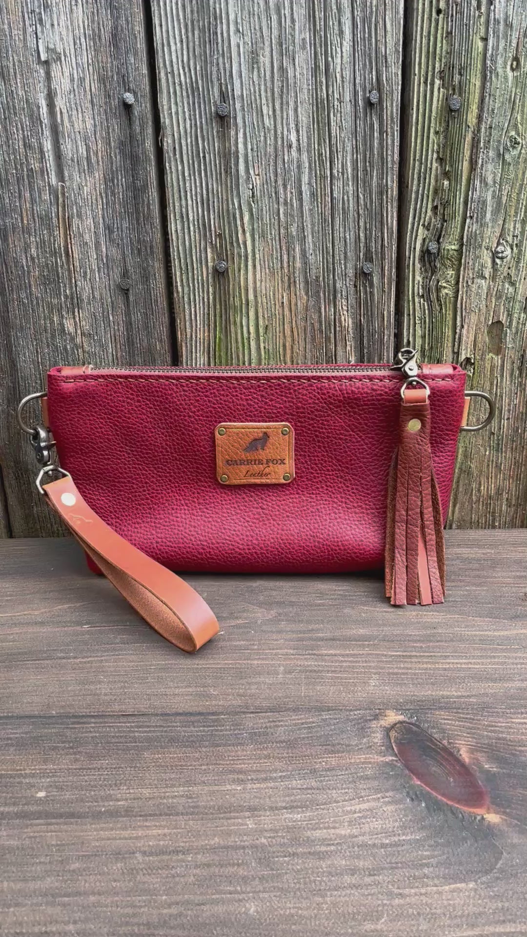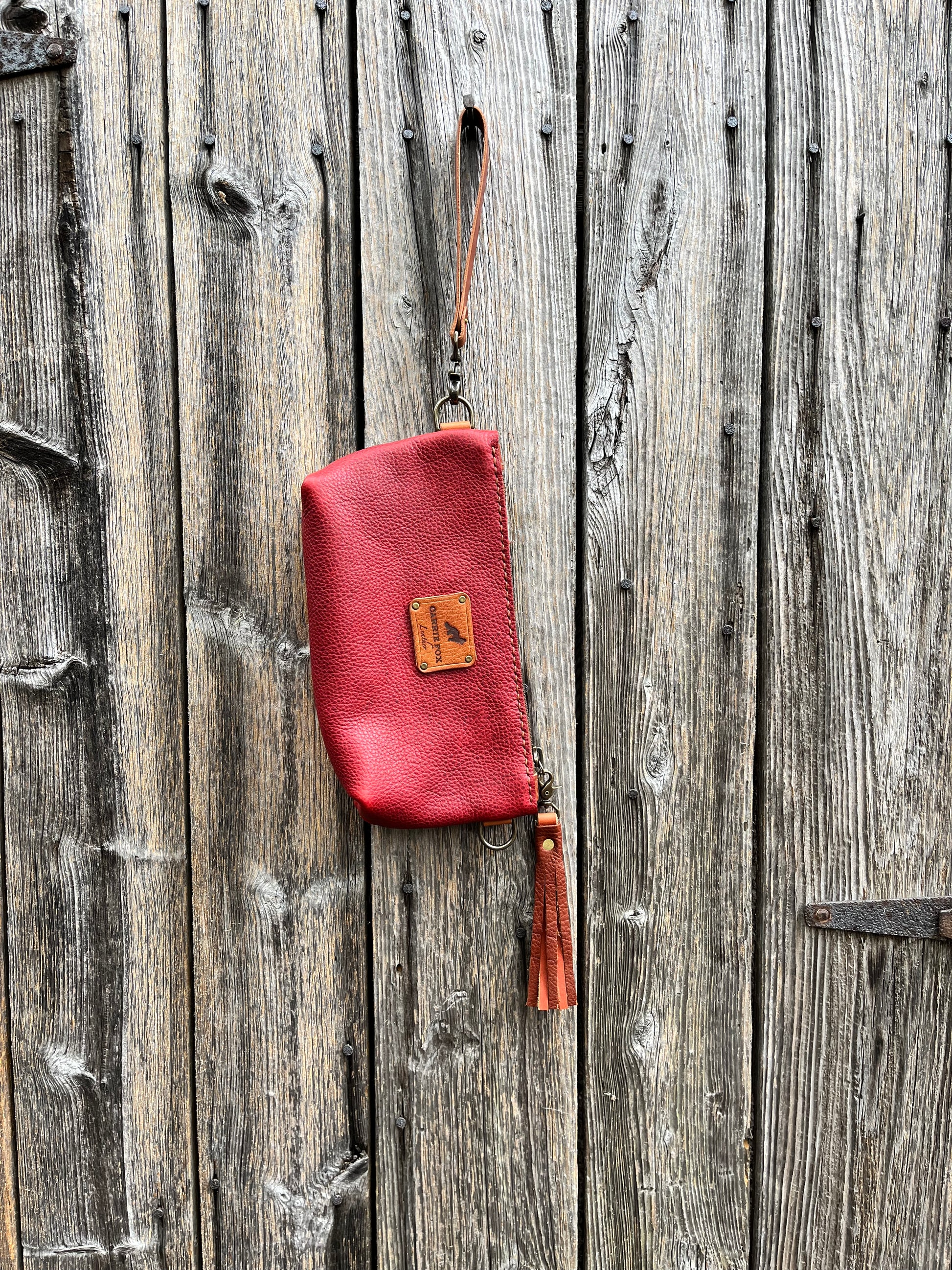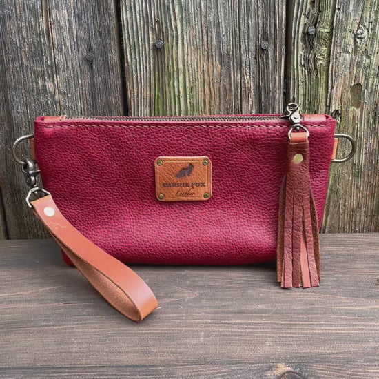 Pip Wristlet in Cherry Bison with English Tan Leather Accents