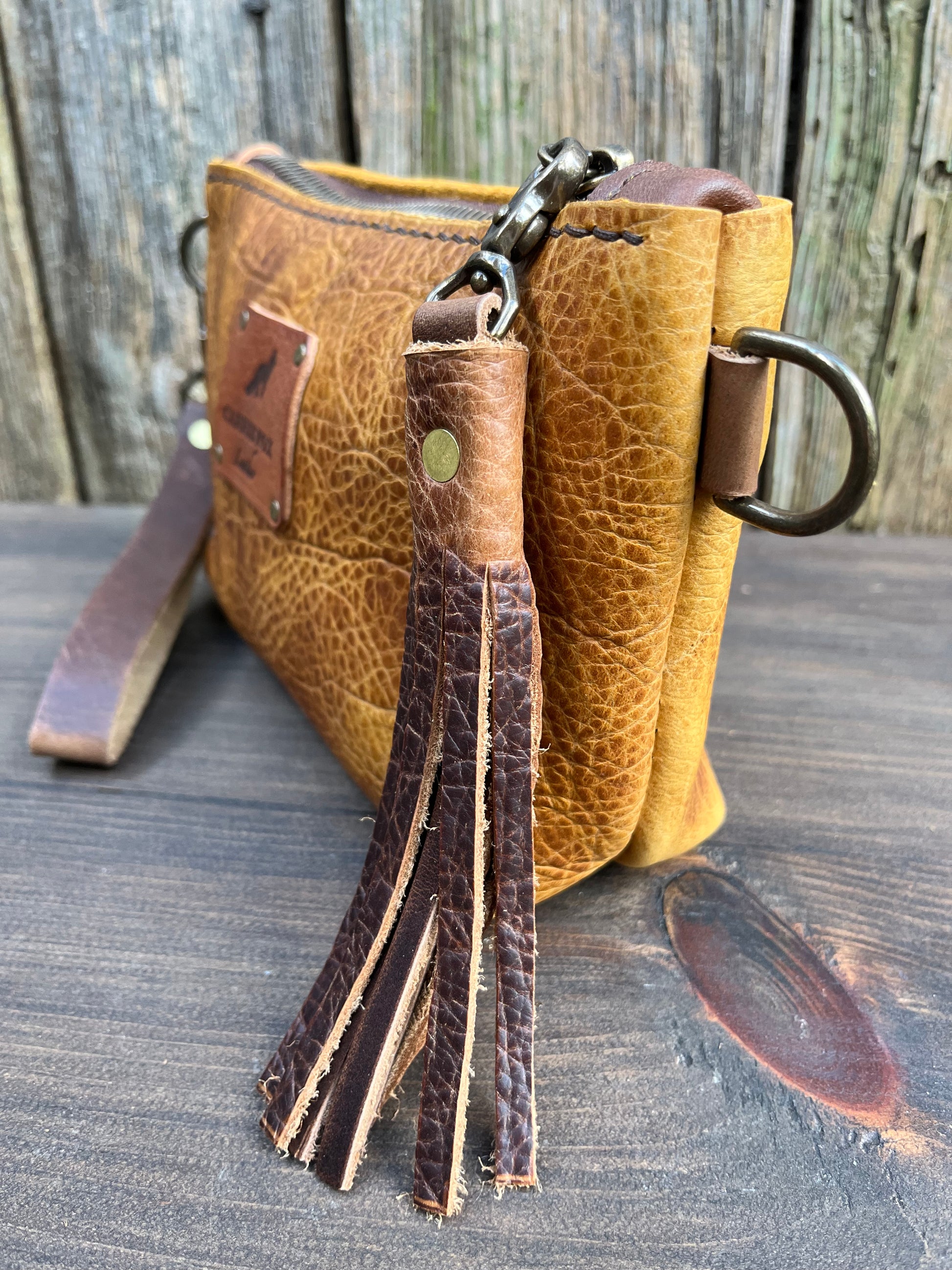 Pipsqueak Wristlet/Crossbody in Peanut Bison with Dark Brown Leather Accents